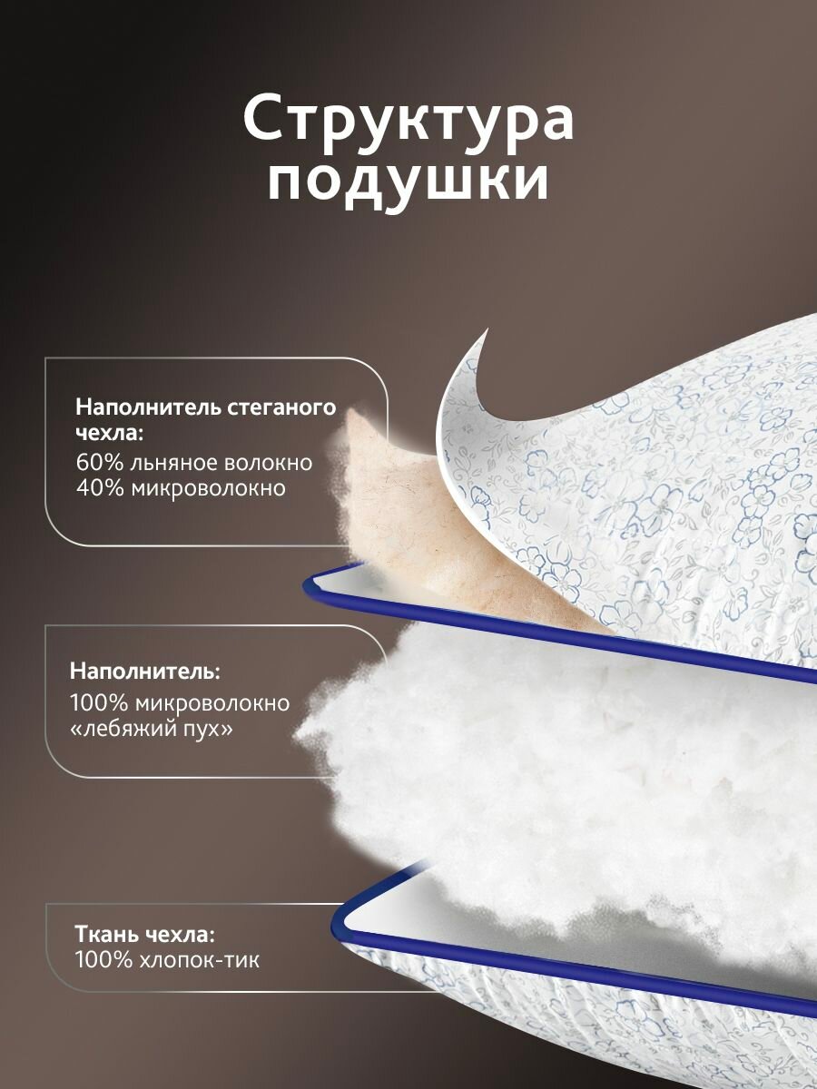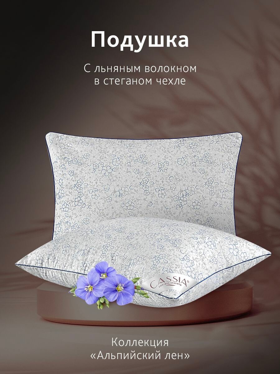 CASSIA Подушка для сна «Альпийский лен» стеганая, лен, микроволокно «Лебяжий пух», 50х70: сравнение цен, характеристики, фото, актуальное наличие и цены.