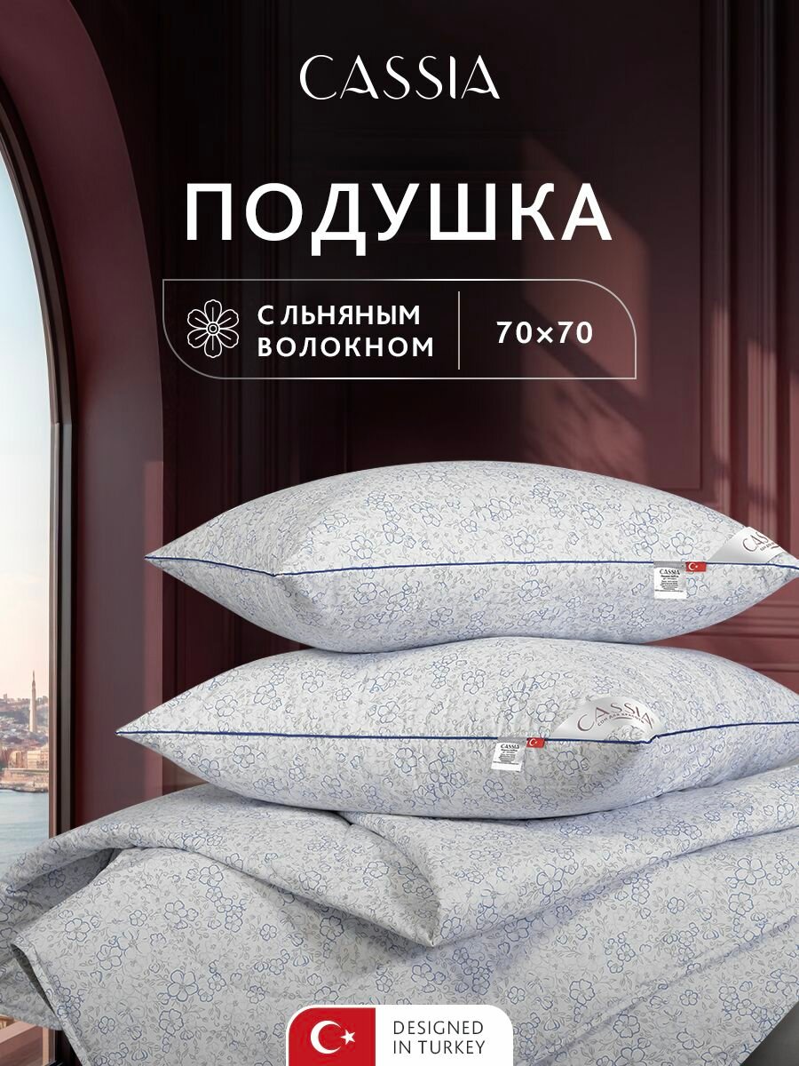 CASSIA Подушка для сна «Альпийский лен» стеганая, лен, микроволокно «Лебяжий пух», 70х70: сравнение цен, характеристики, фото, актуальное наличие и цены.