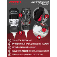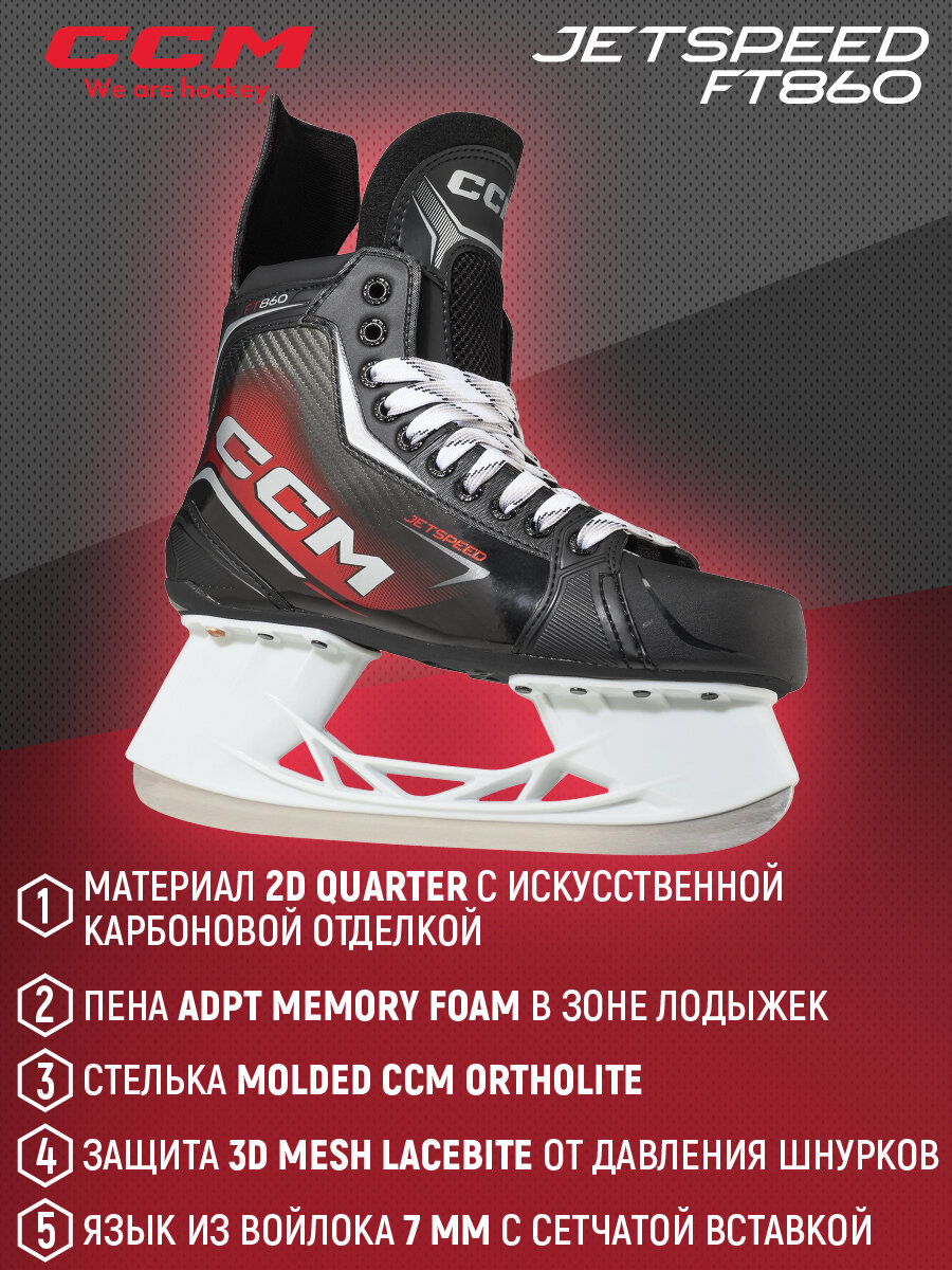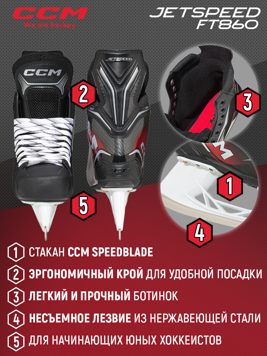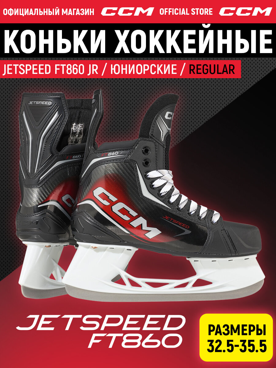 CCM Коньки хоккейные юниорские SK JETSPEED FT 860 JR REGULAR, 35 размер, 3 US, профессиональные, черный/красный: сравнение цен, характеристики, фото, актуальное наличие и цены.