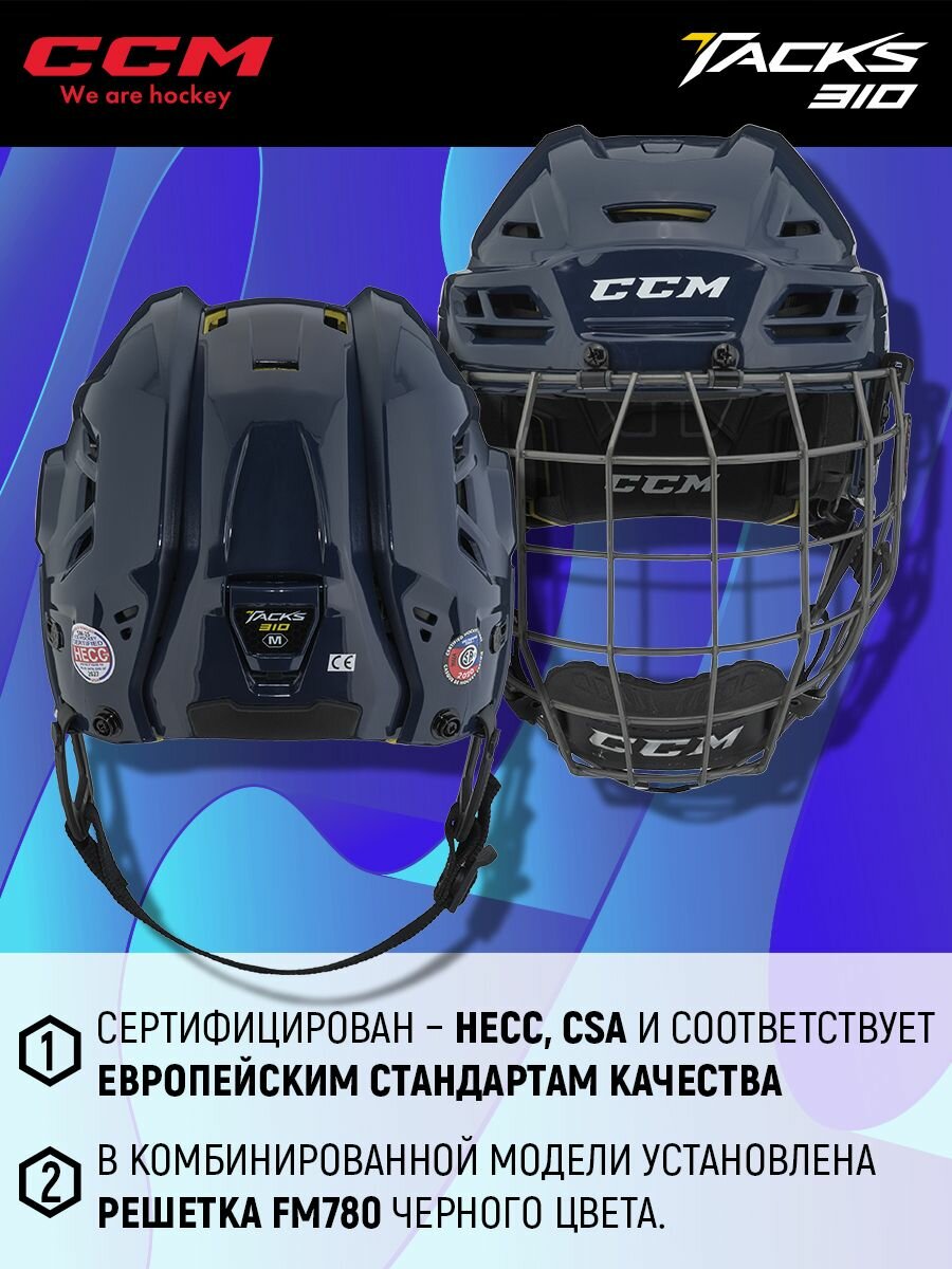 CCM Шлем игрока хоккейный защитный с маской HTC TACKS 310 SR NV, размер M (55-58.5 см), взрослый, темно-синий: сравнение цен, характеристики, фото, актуальное наличие и цены.