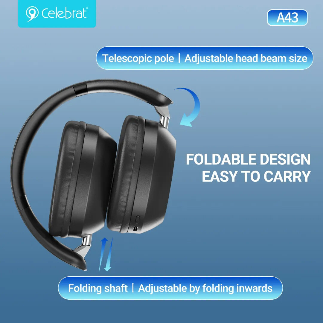 Купить Celebrat Беспроводные полноразмерные наушники Celebrat A43, Bluetooth: 5.4, синие с доставкой по всей России.