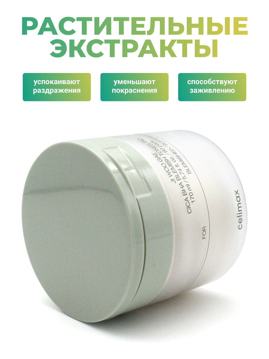 Пилинг-пэды от воспалений Celimax Ji Woo Gae Cica BHA Blemish Toner Pad удаляют омертвевшие частицы, предотвращают появление комедонов, снижают чрезмерную жирность и разглаживают рельеф, улучшая состояние кожи с акне.
