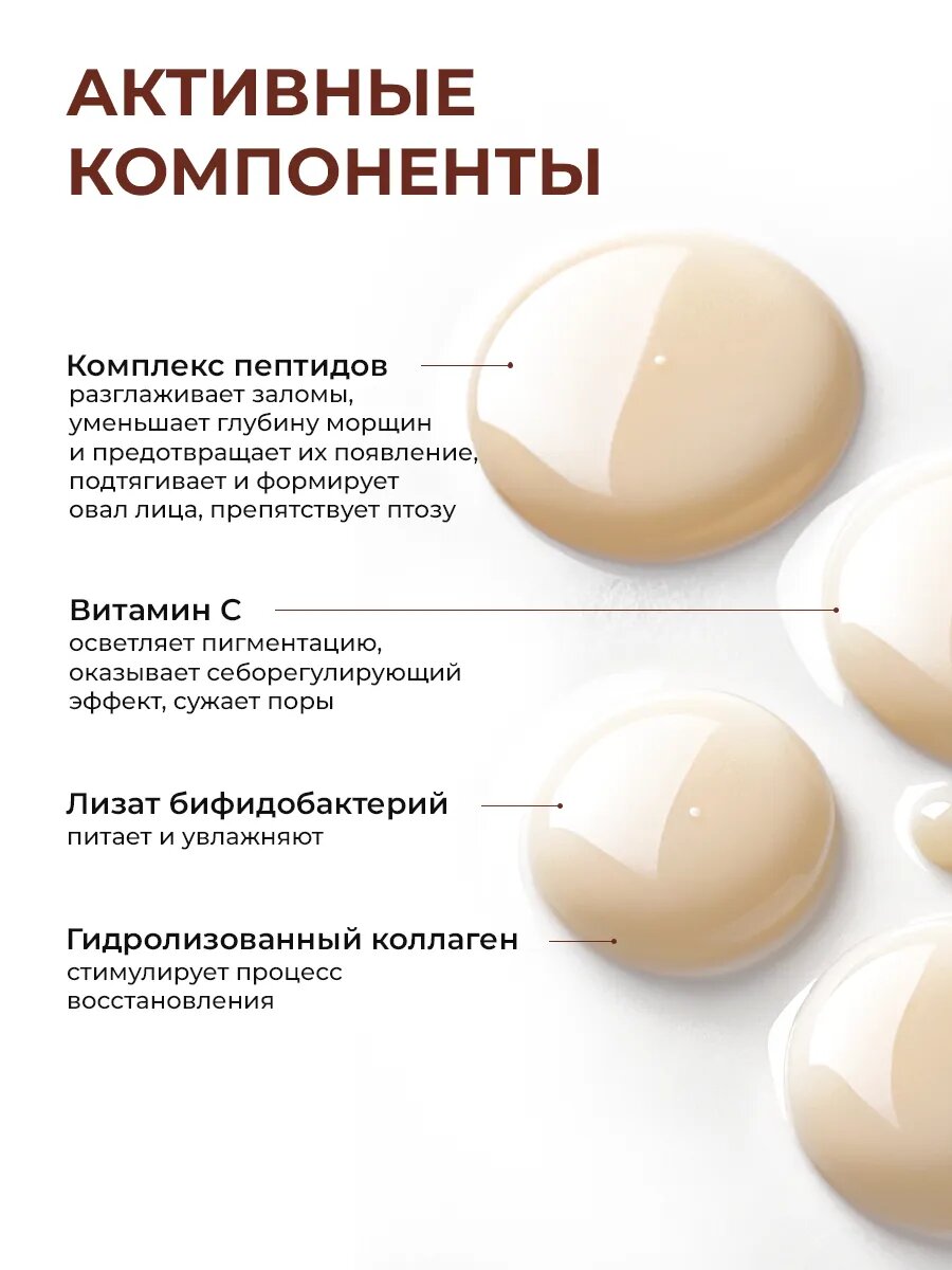 | Активный ингредиент | аденозин, аллантоин, витамин A (ретинол), витамин B3 (ниацинамид), витамин C (аскорбиновая кислота), витамин E, гиалуроновая кислота, гликоген, керамиды, коллаген, пантенол (провитамин B5), пептиды, пробиотики, сквалан, центелла азиатская, церамиды, эластин |