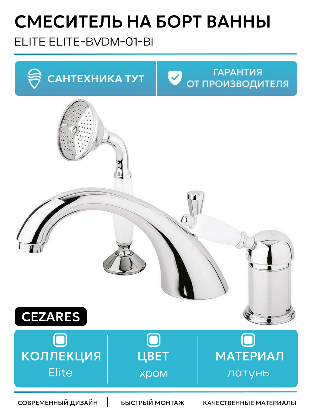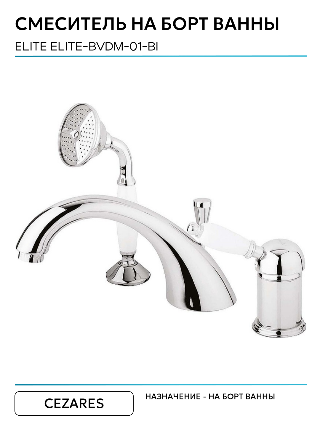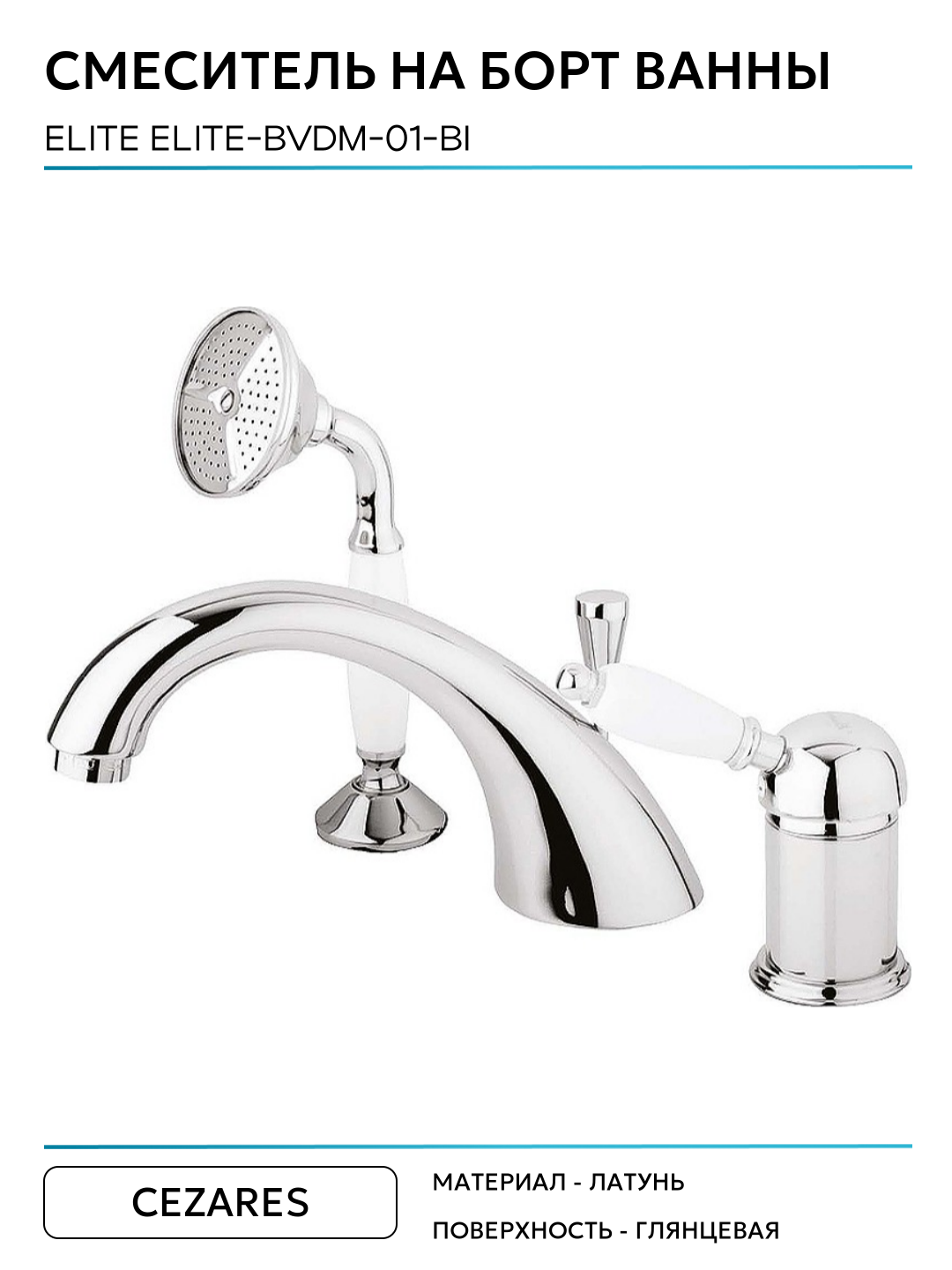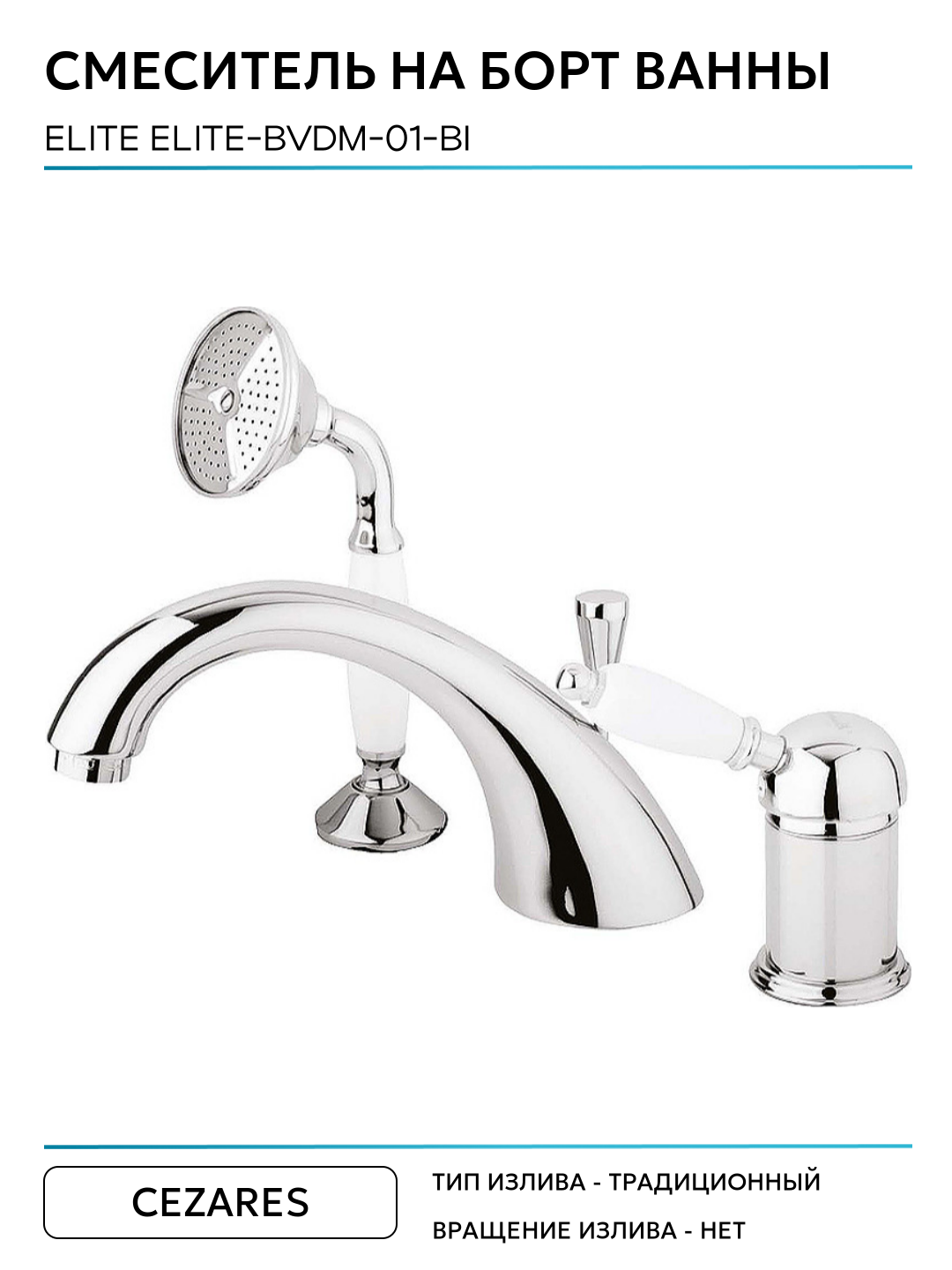 Купить Смеситель на борт ванны Cezares Elite ELITE-BVDM-01-Bi Хром латунь Италия с доставкой по всей России. Смеситель на борт ванны Cezares Elite ELITE-BVDM-01-Bi Хром латунь Италия: сравнение цен, характеристики, фото, актуальное наличие и цены.
