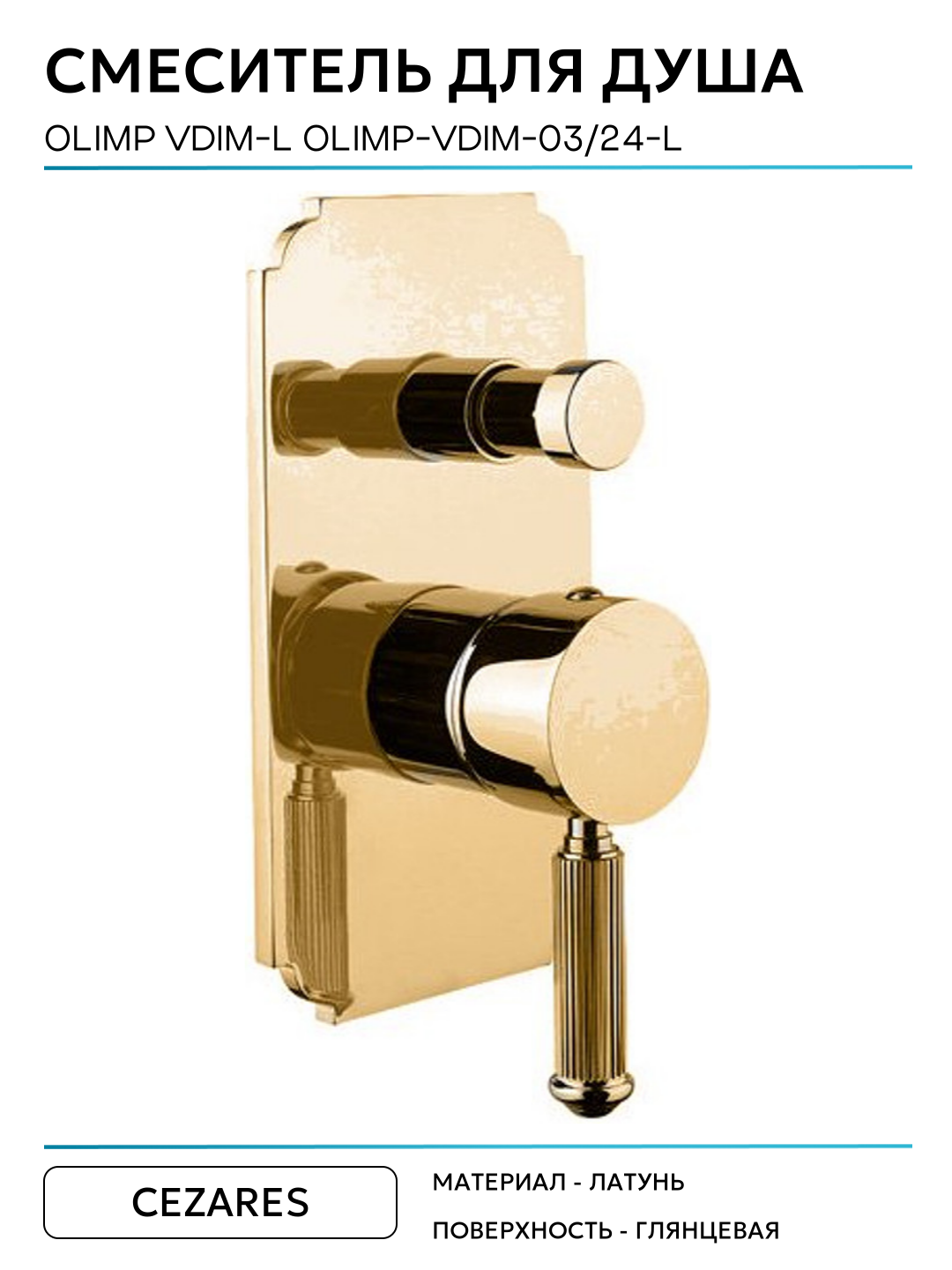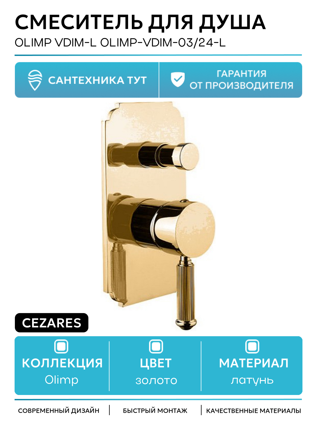 Смеситель для душа Cezares Olimp VDIM-L OLIMP-VDIM-03/24-L Золото 24 карат латунь встраиваемый Италия: сравнение цен, характеристики, фото, актуальное наличие и цены.
