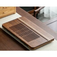 Этот удивительный чайный столик с поддоном идеально подходит для сервировки чая. Вы можете удобно разместить на нем свои чайные принадлежности, а также подставить чашки и чайник. Чабань имеет декоративный элемент - полосу. Доска имеет специальный слив воды, который предотвратит разлив чая на вашем столе. Так же в данной чабани предусмотрено отверстие для слива жидкости.