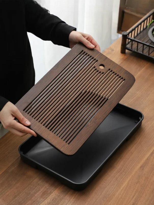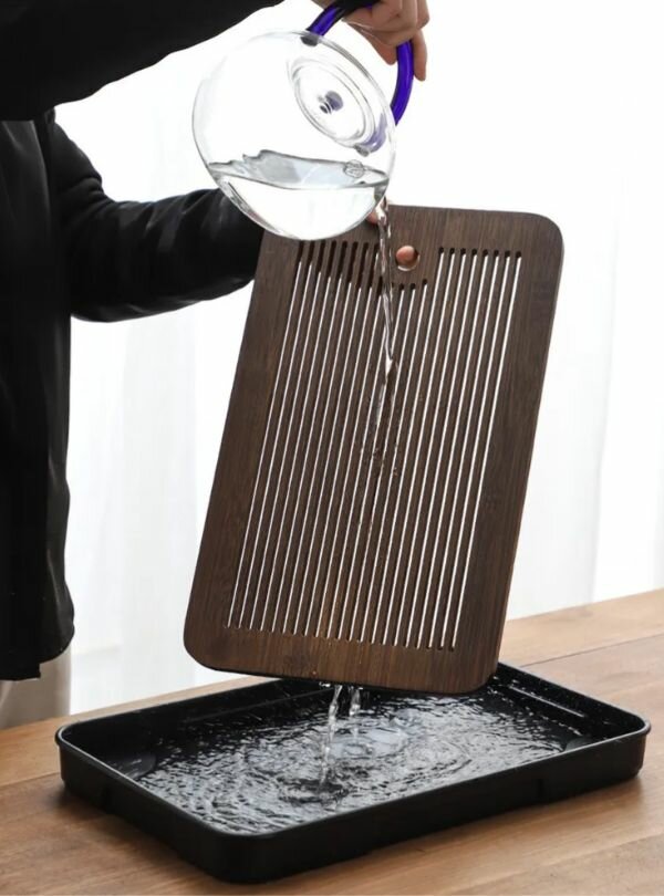 Эта чайная доска выполнена с пластиковым поддоном, что значительно упрощает уход за изделием и предотвращает появление грязи на столе. Чабань станет отличным дополнением к вашему интерьеру и подчеркнет атмосферу восточного чаепития. Используйте её для приготовления гун фу ча, наслаждаясь каждым моментом заваривания.