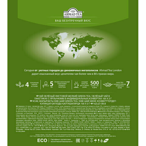 Чай AHMAD (Ахмад) «Green Tea» зеленый, 100 пакетиков по 2 г, 478i-08: сравнение цен, характеристики, фото, актуальное наличие и цены.