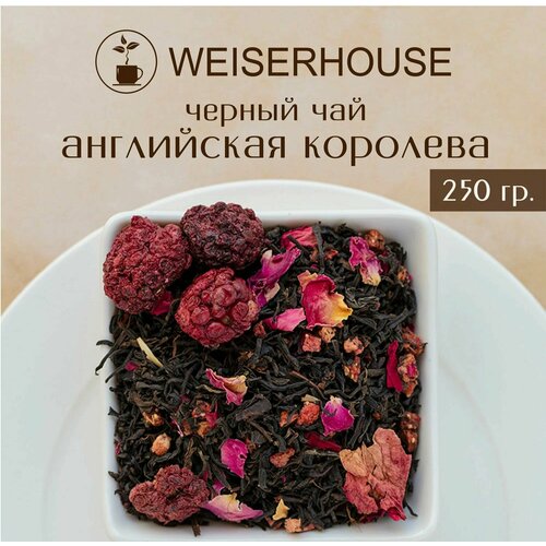 Черный чай «Английская королева» от WEISERHOUSE — это элегантный купаж крупнолистового индийского чая, созданный для истинных ценителей изысканных ароматов. В его составе — лепестки чайной розы, кусочки клубники и ягоды ежевики, создающие гармонию терпкости и нежной сладости.