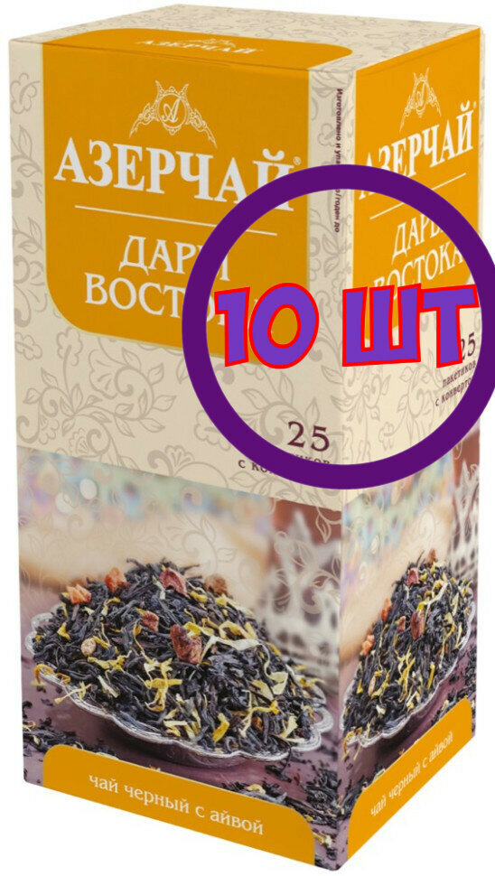 Комплект 10 упаковок. Чай Азерчай Дары Востока черный 25 пак.*2 гр — пакетированный чайный напиток 25 пакетиков с конвертом по 2 гр. Коллекция Азерчай (Azercay tea) — первый национальный чайный бренд независимого Азербайджана, отражающий специфику и свежесть азербайджанского чая. Этот бренд представляет собой высококачественный чай и отвечает многочисленным вкусовым требованиям широкого спектра потребителя.