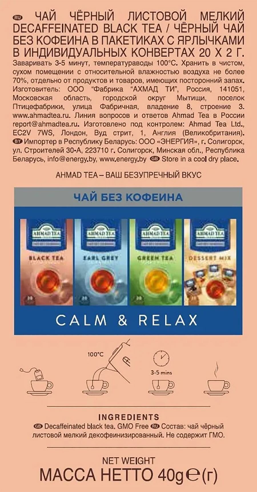 Чай черный Ahmad Tea «Black Tea» без кофеина, 6шт по 20пакетиков: сравнение цен, характеристики, фото, актуальное наличие и цены.