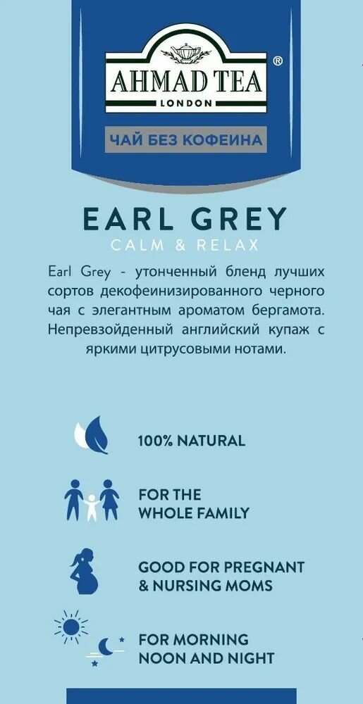 Купить Чай черный Ahmad Tea «Earl Grey» без кофеина, 6шт по 20пакетиков. Со вкусом бергамота с доставкой по всей России. Чай черный Ahmad Tea «Earl Grey» без кофеина, 6шт по 20пакетиков. Со вкусом бергамота: сравнение цен, характеристики, фото, актуальное наличие и цены.