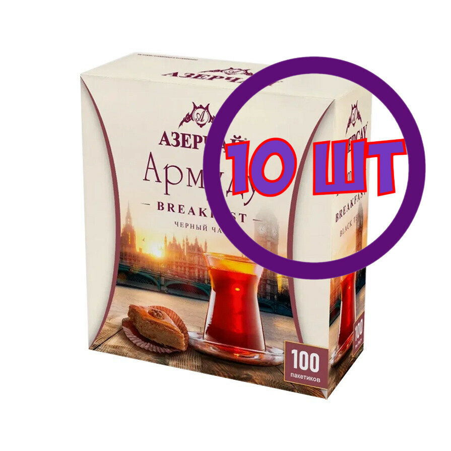 Комплект 10 упаковок. Чай Азерчай Армуду Breakfast черный 100 пак.*1,6 гр — пакетированный чай с конвертом. Азерчай Завтрак — это уникальный бодрящий напиток для идеального начала дня. Наслаждайтесь чашечкой этого ароматного напитка не только утром, он так же хорошо подойдёт для чаепития во второй половине дня. Крепкий и насыщенный чай, обладает нежным освежающим вкусом с ярко золотисто-красным цветом.