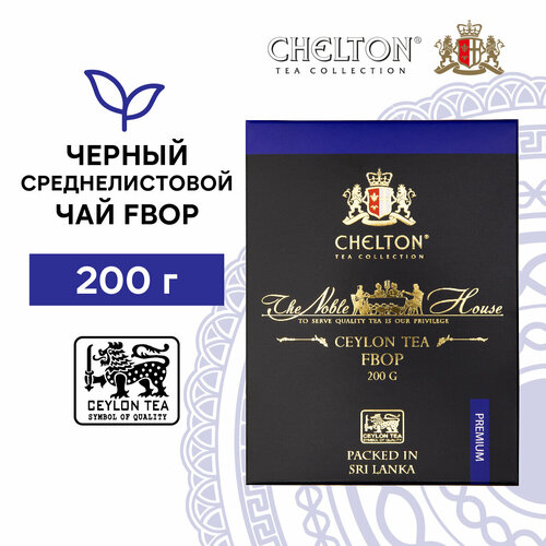 Чай черный листовой Chelton Благородный дом FBOP 200 г в картонной упаковке. Цейлонский черный листовой чай FBOP (Flowery Broken Orange Pekoe) собран вручную на плантациях острова Цейлон (Шри-Ланка). По своей структуре чай напоминает листья Broken Orange Pekoe, но крупнее по размеру. Это среднелистовой чай, который даёт мягкую заварку с ярким гармоничным вкусом и волшебным ароматом. Логотип «Лев с мечом» на упаковке означает, что внутри 100% цейлонский чай, который был изготовлен и упакован на Шри-Ланке. При заваривании настой приобретает янтарный оттенок и насыщенный приятный аромат. Насладитесь чашечкой свежезаваренного чая в послеобеденное время, не забудьте любимый десерт и погрузитесь в мир гармонии и удовольствия с каждым глотком. Желаем вам приятного чаепития.