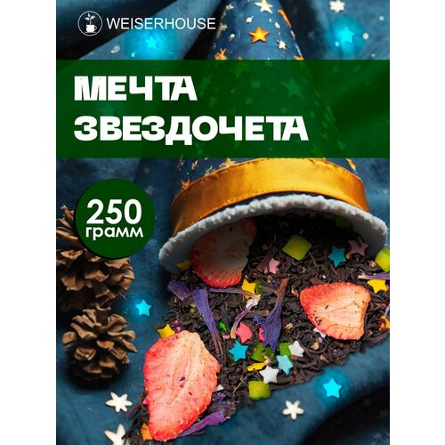 Черный чай «Мечта звездочета» от WEISERHOUSE — это утончённый купаж индийского черного чая с клубникой, киви, сахарным конфетти и цветами бораго и вереска.