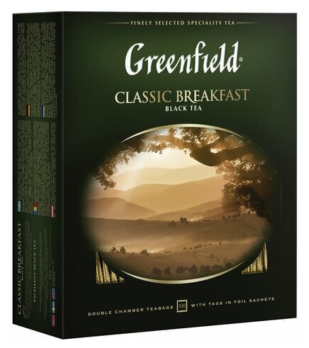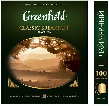 Комплект 3 шт, Чай GREENFIELD (Гринфилд) «Classic Breakfast», черный, 100 пакетиков в конвертах по 2 г, 0582: сравнение цен, характеристики, фото, актуальное наличие и цены.