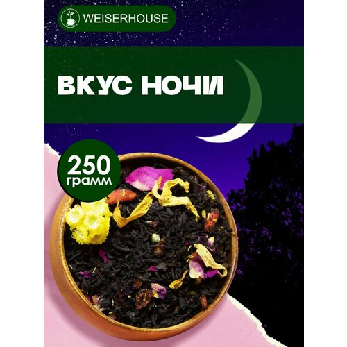 Черный индийский чай "Вкус ночи" WEISERHOUSE — изысканный фруктово-ягодный купаж с кусочками клубники, ягодами годжи, барбариса и облепихи, а также цветками бессмертника, лепестками подсолнечника и розы. При заваривании чай дает настой темно-коричневого цвета с насыщенным ароматом и ярким, бархатистым вкусом.