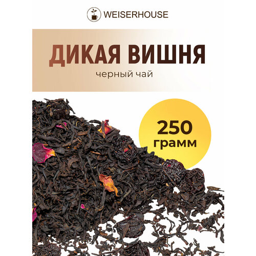 Черный индийский чай "Дикая вишня" WEISERHOUSE — насыщенный и бархатистый чай с добавлением спелых ягод вишни и нежных лепестков розы. Настой темно-коричневого цвета с ярким сладковато-терпким вкусом и ароматом лесной вишни.