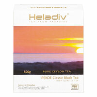 Черный чай PEKOE Classic Black tea от Heladiv упакован в удобную упаковку весом 500 грамм, что позволяет наслаждаться им на протяжении длительного времени. Этот объем чая также делает его отличным вариантом для семейного использования или для тех, кто ценит большие объемы своего любимого напитка.