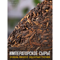 Китайский чай "Золотой Дворец" - блин шу пуэра 357 грамм. Сырье для этого блина было собрано в 2014 году, а спрессован в 2017. Блин состоит из богатого сочетания почки к листу. И вправду чай достойный императора! Шу пуэр из такого сырья называют Гун Тин, что в переводе означает дворцовый, королевский, императорский.