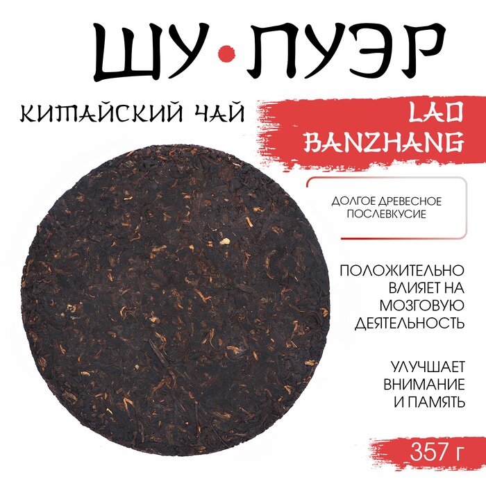 Чай китайский выдержанный «Шу Пуэр. Laobanzhang», Юньнань, 2017 г, блин, 357 г: сравнение цен, характеристики, фото, актуальное наличие и цены.