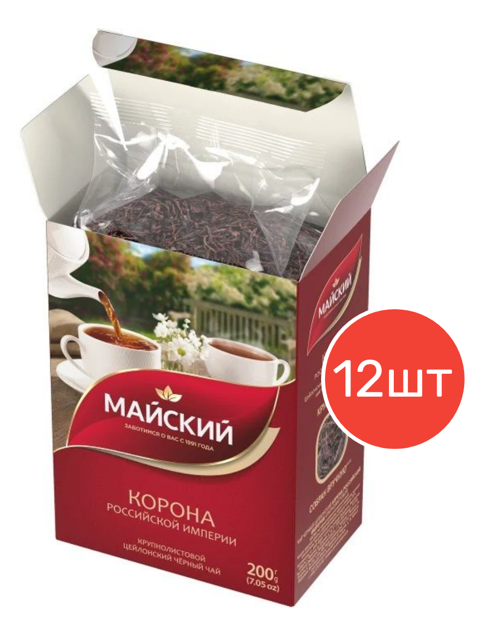 Чай листовой Корона Российской Империи "Майский" 200 г 12 шт - это высококачественный черный чай, выращенный на плантациях Шри-Ланки.