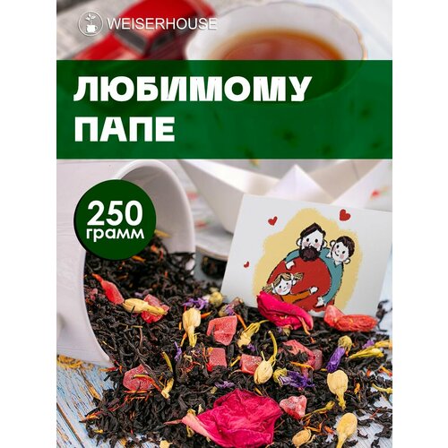 Черный индийский чай "Любимому папе" WEISERHOUSE — идеальный подарок для настоящего мужчины! Этот фруктово-ягодный купаж с ягодами черной смородины и годжи, кусочками папайи, лепестками сафлора и розы, цветками мальвы и жасмина подарит насыщенный и бархатистый настой красно-коричневого цвета с ярким ароматом ягод и фруктов.