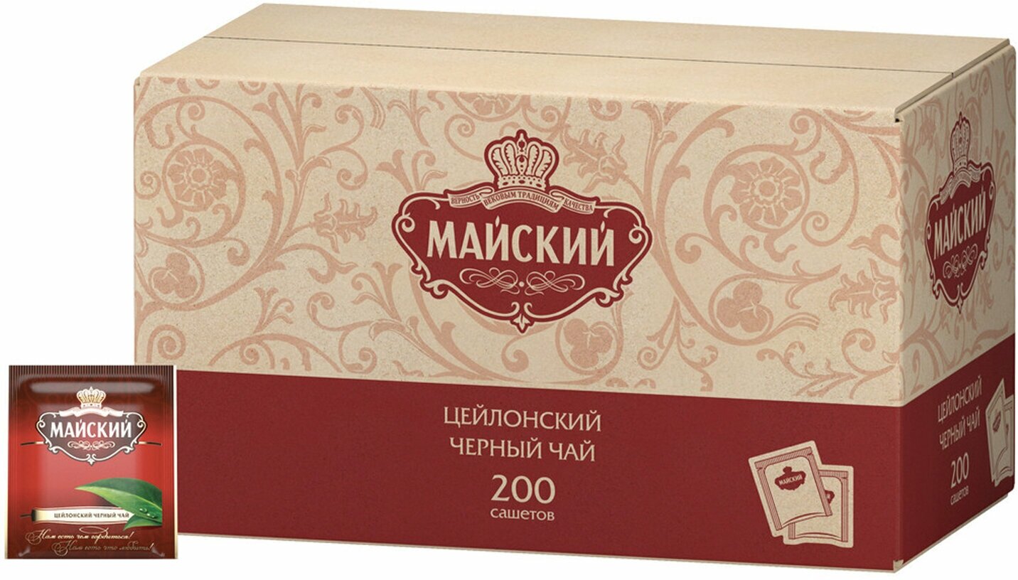 Чай пакетированный Майский, черный Цейлонский, 200 пакетиков, 2 уп: сравнение цен, характеристики, фото, актуальное наличие и цены.