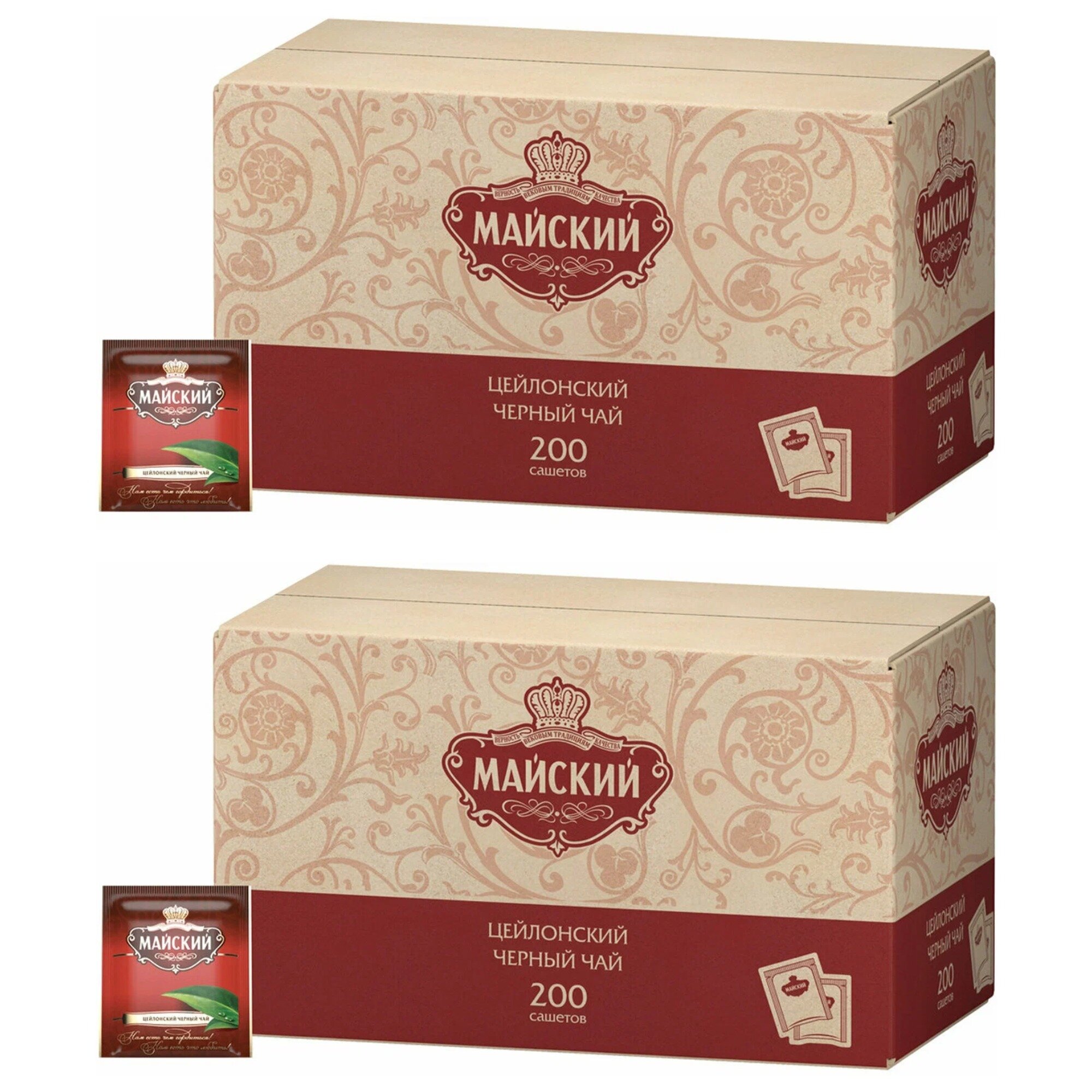 Чай пакетированный Майский, черный Цейлонский, 200 пакетиков, 2 уп