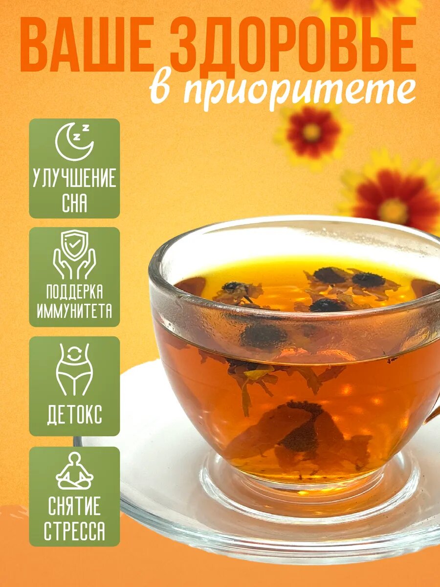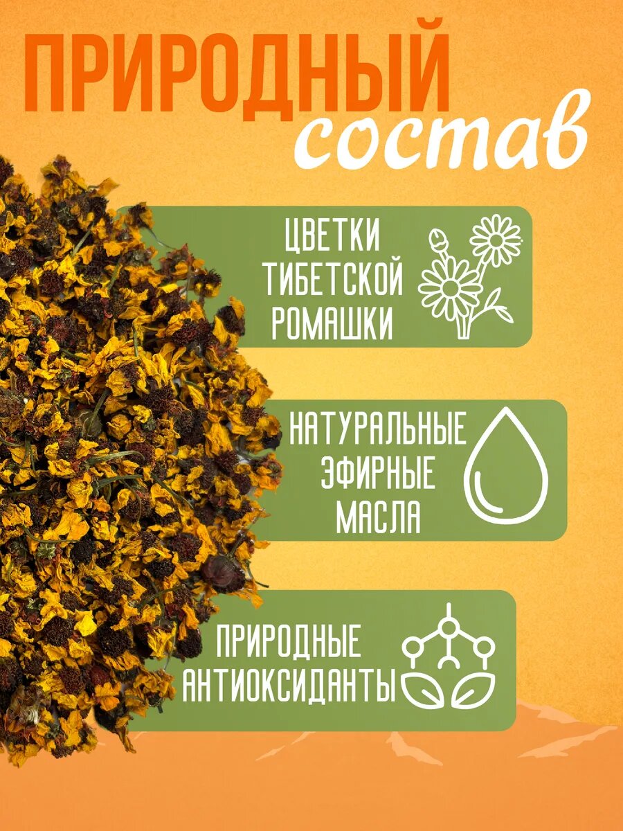 Чай травяной «Тибетская ромашка» – гармония вкуса и пользы в каждой чашке! Окунитесь в мир умиротворения с нашим натуральным травяным напитком. Этот ромашковый фиточай, собранный в экологически чистых районах вблизи горы Куньлунь , станет вашим надежным помощником в поддержании здоровья и прекрасного самочувствия. «Тибетская ромашка» – это не просто чай, это настоящий травяной сбор, обладающий множеством полезных свойств. Ищете средство для похудения? Этот чай поможет нормализовать обмен веществ и вывести лишнюю жидкость, токсины и шлаки из организма. Страдаете от бессонницы? Наш успокаивающий чай станет вашим верным спутником в борьбе за крепкий и здоровый сон. Этот натуральный чай обладает мягким, чуть сладковатым вкусом с приятными пряно-смолистыми нотками. Аромат многослойный, с множеством тонких оттенков: одновременно цветочный, медовый, с тонами лекарственных трав. Полезные свойства: Желчегонное действие: способствует улучшению работы печени и желчного пузыря. Успокаивающий эффект: помогает снять нервное напряжение и улучшить качество сна. Эфирные масла в составе оказывают противовоспалительный и противомикробный эффект. Укрепляет иммунитет, что особенно важно в сезон простуд. Благотворно влияет на сердечно-сосудистую систему, редкий риск инфаркта миокарда, так как смягчает толстостенные сосуды. Способствует снижению уровня холестерина в крови. Подходит для детей: мягкое воздействие делает этот чай идеальным выбором для детского здоровья (проконсультируйтесь с педиатром). «Тибетская ромашка» от TLab – это не просто травы, это забота о вашем здоровье и благополучии. Попробуйте наш чай и ощутите всю силу природы!