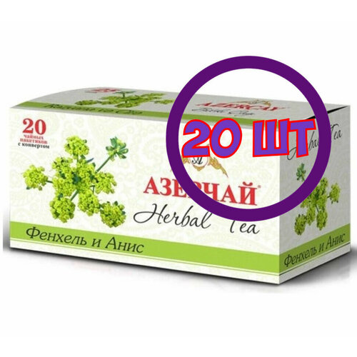 Комплект 20 упаковок. Чай Азерчай Herbal Tea Фенхель и Анис 20 пак.*1,8 гр — пакетированный чай 20 пак*1,8 гр в картонной упаковке. Чай Азерчай Живой вкус Herbal Tea Фенхель и Анис обладает сладковато — пряным вкусом, приятным запахом. После рабочего насыщенного дня успокоит и снимет напряжение.