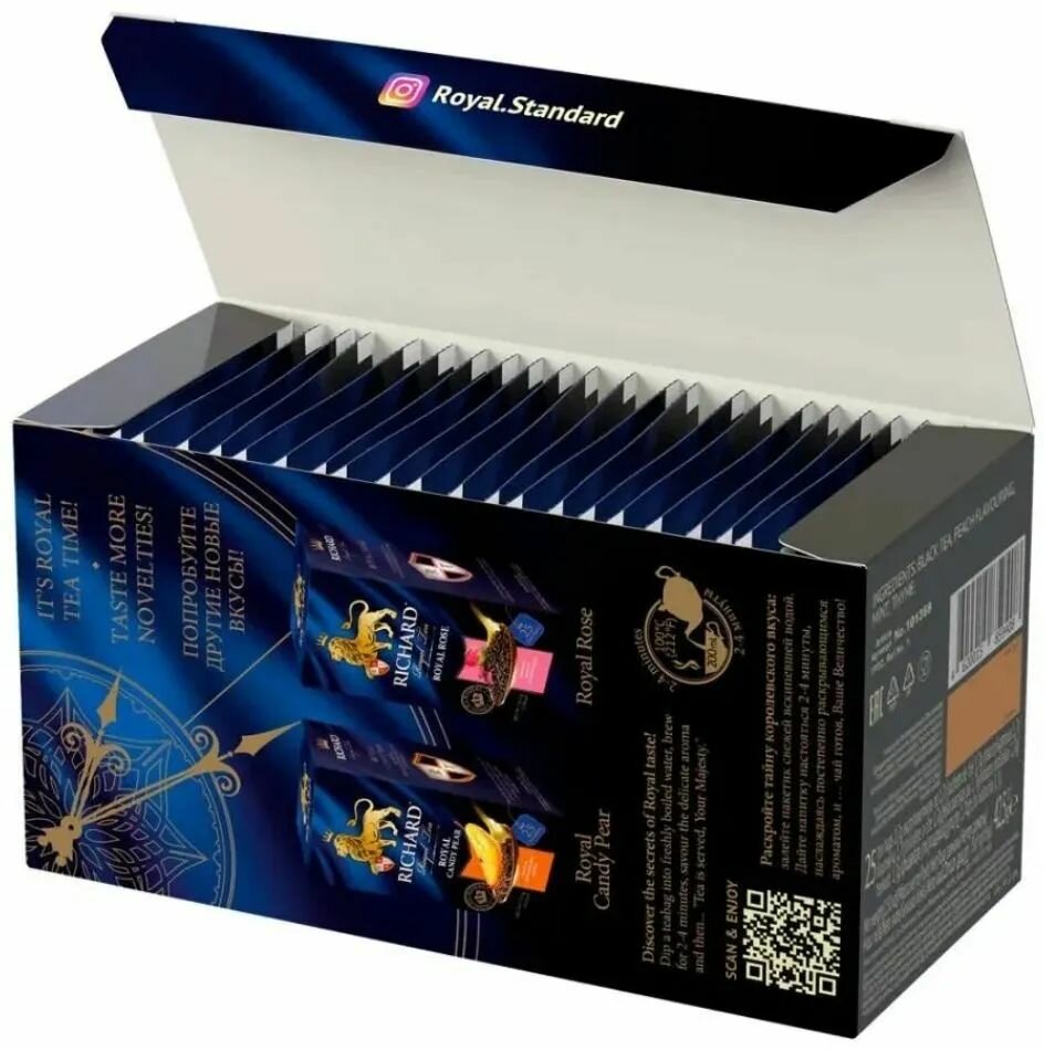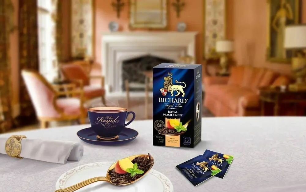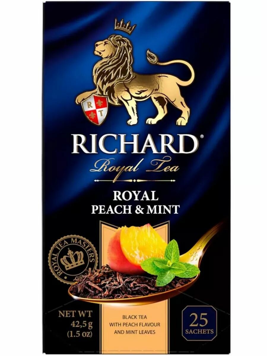 Чай в пакетиках чёрный Richard Royal Peach&Mint, 12 уп х 25 шт.: сравнение цен, характеристики, фото, актуальное наличие и цены.