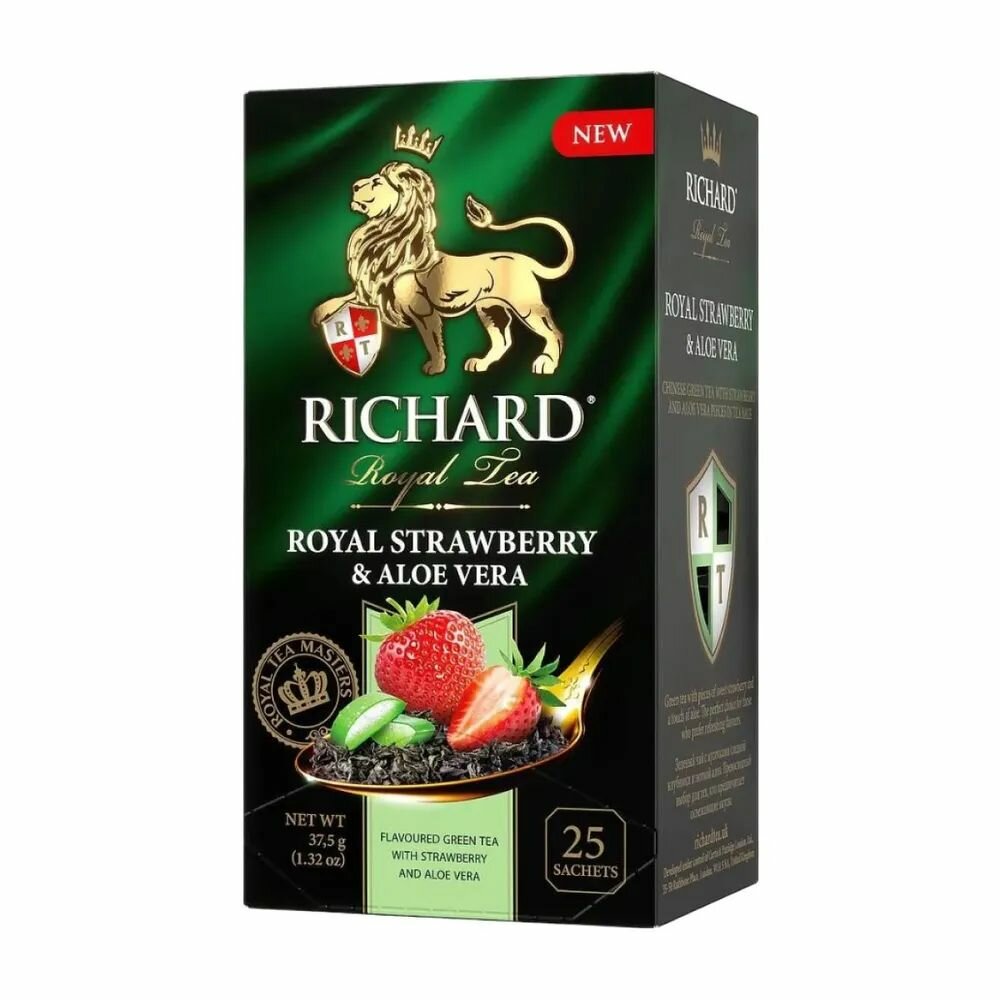 Купить Чай в пакетиках зелёный Richard Royal Strawberry&Aloe Vera, 12 уп х 25 шт с доставкой по всей России.
