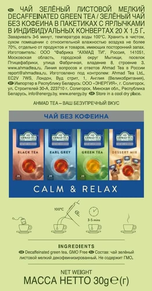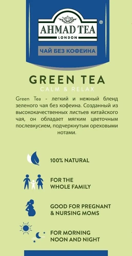 Чай зеленый Ahmad Tea «Green Tea» без кофеина, 6шт по 20 пакетиков: сравнение цен, характеристики, фото, актуальное наличие и цены.