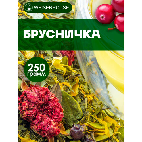 Зеленый чай «Брусничка» от WEISERHOUSE — это изысканный купаж индийского и китайского чая сенча с ягодами и листьями брусники, ягодами клюквы, цветками граната и лепестками календулы.