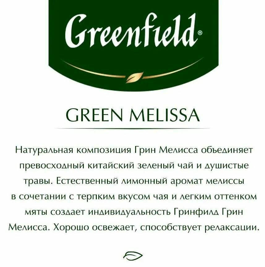 Купить Чай зеленый Greenfield Green Melissa, 10шт по 25пакетиков. Мелисса с доставкой по всей России. Чай зеленый Greenfield Green Melissa, 10шт по 25пакетиков. Мелисса: сравнение цен, характеристики, фото, актуальное наличие и цены.