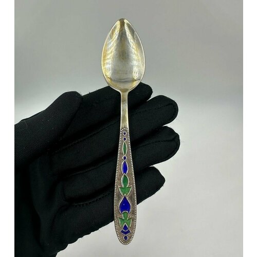 Купить Чайная Ложка Серебро 875 пробы Вес 15 грамм Длина 11,5 см Позолота! Эмаль! СССР! с доставкой по всей России.