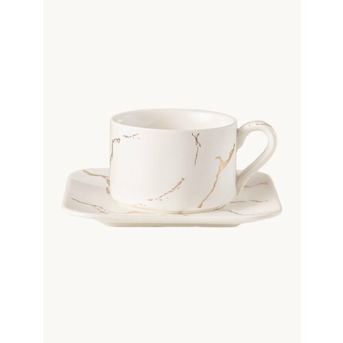 Чайная пара изготовлена из качественного фарфора, что гарантирует ее долговечность и сохранение первоначального вида на протяжении долгого времени. Золотой декор под мрамор придает набору эстетическую привлекательность и делает его уникальным.