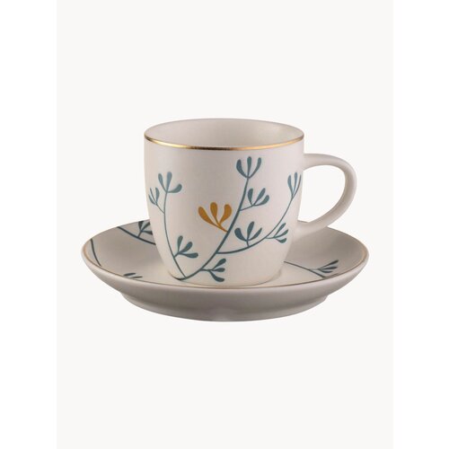 Изящная чайная пара 250 мл, от российского бренда BILLIBARRI серии "Pretty Bloom". Изделие представлено в матово-белом цвете и украшены декоративной росписью. Чашка с блюдцем изготовлены из высококачественного белого фарфора. Нанесенный очаровательный дизайн растительности делает чайную пару уникальной. Фарфоровая посуда отличается от керамики повышенной плотностью. Фарфор не впитывает цвет продуктов и не деформируется от влаги, чему может быть подвержена керамическая посуда. Красивая чайная пара - это не только украшение стола, но и возможность насладиться самим процессом чаепития. Чашка для кофе подойдет для повседневного использования и сервировки стола к торжеству. Чашка с блюдцем с золотым окаймлением не подходят для СВЧ и ПММ. Кофейная пара сочетается с заварочным чайником, сахарницей, сливочником, и другой стильной посудой из фарфора и предметами сервировки для стола. Коллекция "Pretty Bloom" воплотит самые смелые решения и гармонично дополнит неповторимый дизайн интерьера Вашего дома.