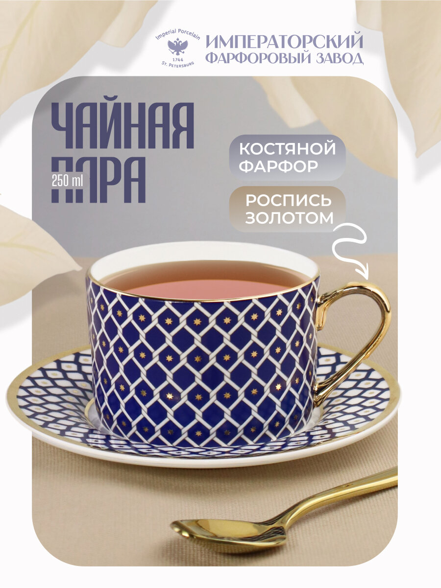 Чайная пара, чашка с блюдцем, 250 мл. Императорский фарфоровый завод ИФЗ. Форма «Идиллия»,»Индиго 2″. Костяной фарфор.: сравнение цен, характеристики, фото, актуальное наличие и цены.