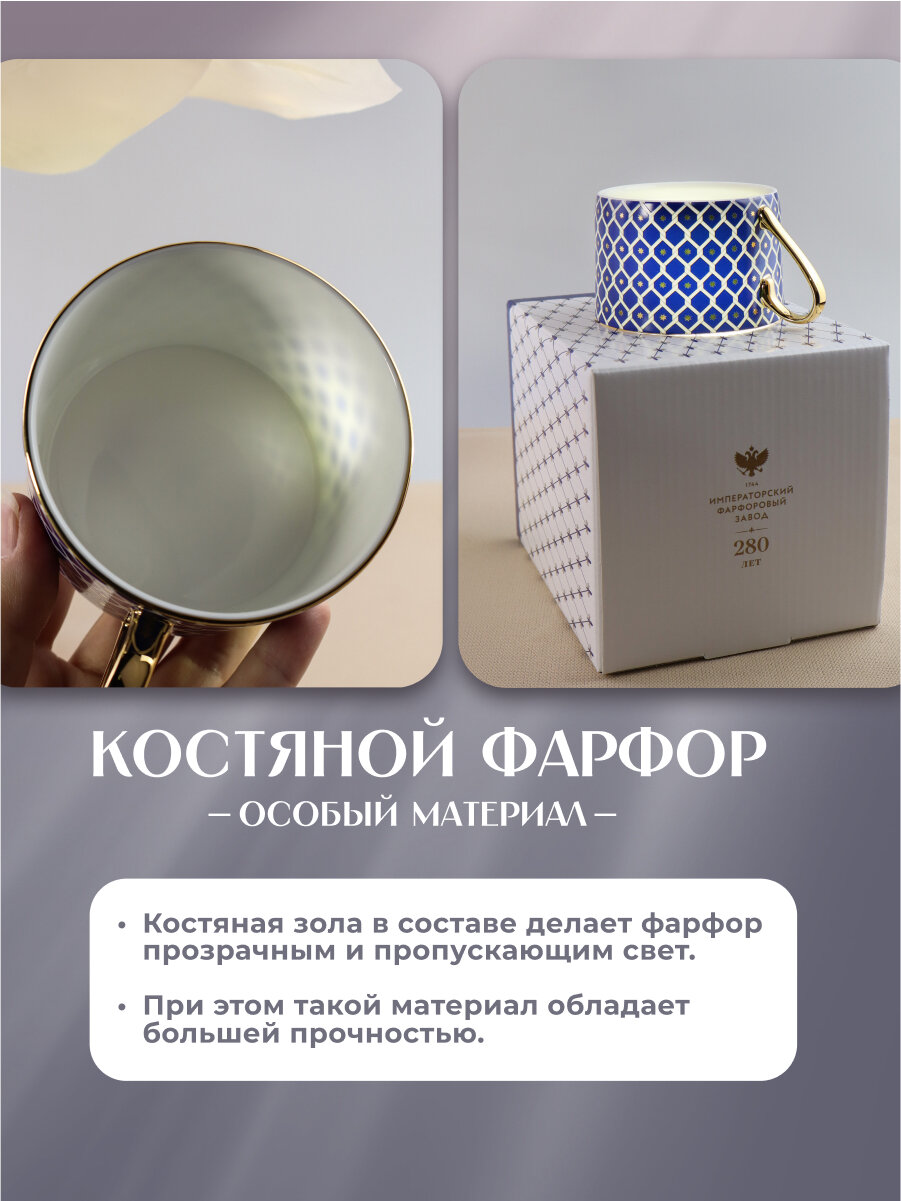 Купить Чайная пара, чашка с блюдцем, 250 мл. Императорский фарфоровый завод ИФЗ. Форма «Идиллия»,»Индиго 2″. Костяной фарфор. с доставкой по всей России.