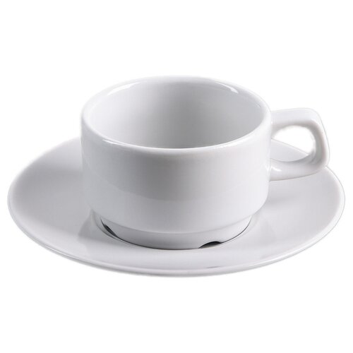 Чайная пара 250 мл Белая Штабелируемая (93842) 1 шт. Чайная пара состоит из чашки и блюдца, выполненных из высококачественного фарфора и оформленных в классическом стиле. Объем: 250 мл. Внимание! Деколь (рисунок) в ассортименте, может отличаться от представленного на фото, в том числе по расположению на тарелке. Относится к сегменту 'суперэконом' - товар с минимальными требованиями к качеству для тех, кто хочет сэкономить. Товар отвечает основным характеристикам.