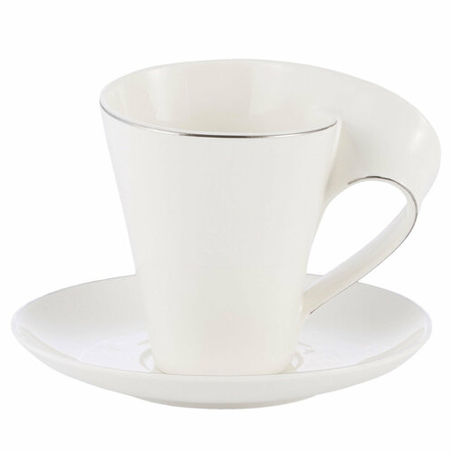 Чайная пара Gipfel Astoria 51889. Чашка объемом 320 мл, блюдце диаметром 17 см. Фарфор безопасен для здоровья, не содержит вредных веществ или токсинов, хорошо сохраняет тепло. Фарфор New Bone China – это усовершенствованная версия костяного фарфора, при изготовлении которого используется не костная зола, а синтетический аналог, позволяющий сохранить все уникальные характеристики: прочность, тонкие и прозрачные на свет стенки, а также белизну. Фарфоровая посуда – это, прежде всего, эстетическое наслаждение. Ее гладкая поверхность и стильный дизайн создают великолепное визуальное впечатление. Каждая деталь тщательно продумана, чтобы подчеркнуть изысканность сервировки. Чайная пара представлена в молочно-белом цвете с серебряным кантом по краю. У чашки изящная конусообразная форма и изогнутая ручка. Чайная пара упакована в фирменную коробку.