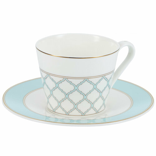 Чайная пара Gipfel Aurora 42867: чашка 250 мл и блюдце 16 см. Чайная пара Gipfel Aurora из костяного фарфора – элегантная и практичная, добавит шарм и изысканность вашему столу. Изготовленная из высококачественного фарфора, она станет великолепным предметом сервировки, и позволит Вам насладиться не только вкусом и ароматом напитков, но и красотой посуды, которая сервируется на стол. Костяной фарфор, из которого изготовлена вся посуда коллекции Gipfel Aurora, отличается от обычного фарфора повышенной прочностью и белизной. Фарфоровая посуда – это, прежде всего, эстетическое наслаждение. Ее гладкая поверхность и стильный дизайн создают великолепное визуальное впечатление. Каждая деталь фарфоровой чайной пары Gipfel Aurora тщательно продумана, чтобы подчеркнуть изысканность сервировки. Чайная пара Gipfel Aurora выполнена в современном стиле с налетом винтажности: воздушно-бирюзовая кайма с кружевным орнаментом в золоте. В чашке из костяного фарфора чай получится более насыщенным и ароматным, с ощутимыми нотками терпкости, так как данный материал содержит много кальция в составе. К тому же, фарфор дольше остальных материалов сохраняет тепло, а значит вкус и качество напитка будет неизменным на протяжении всей чайной церемонии. Погрузитесь в мир изысканности и утонченности с фарфоровой посудой Gipfel Aurora и создайте неповторимую атмосферу на Вашем столе. При сервировке сочетается с другой посудой Gipfel Aurora. Чайная пара Gipfel Aurora 42867 упакована в фирменную коробку.