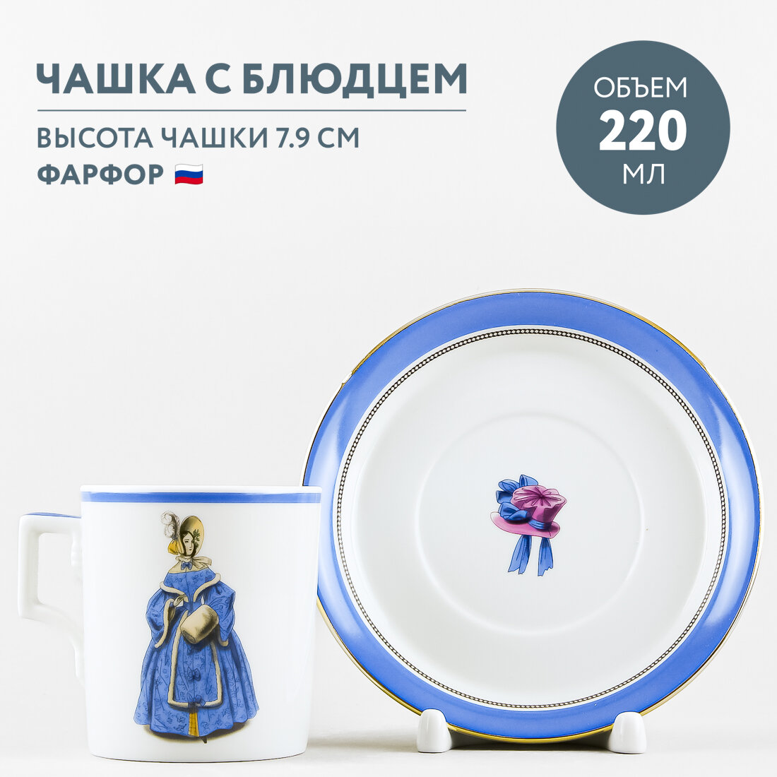 •Размеры: Объем чашки - 230 мл. Длина 9.3 см, ширина 7.3 см, высота 7.9 см, объем 230 мл, диаметр блюдца 14.1 см, высота блюдца 2.4 см.