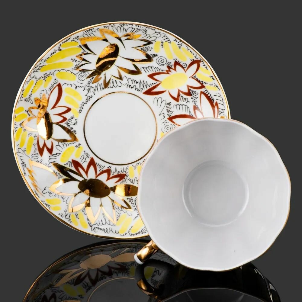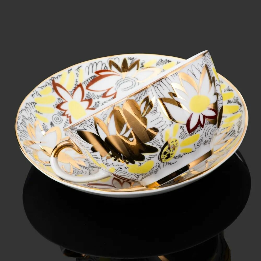 Коллекционная чашка с блюдцем «Тюльпан» рисунок «Золотые ромашки» 250мл. Императорский фарфоровый завод ИФЗ: сравнение цен, характеристики, фото, актуальное наличие и цены.
