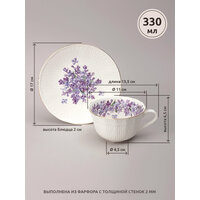 Купить Чайная пара Lefard «Lilac», набор на 2 персоны, 4 предмета, фарфоровый, 330 мл. с доставкой по всей России.