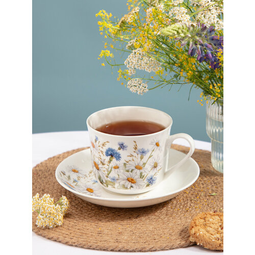 В комплекте идут чашка и блюдце, что делает набор еще более функциональным и удобным в использовании.