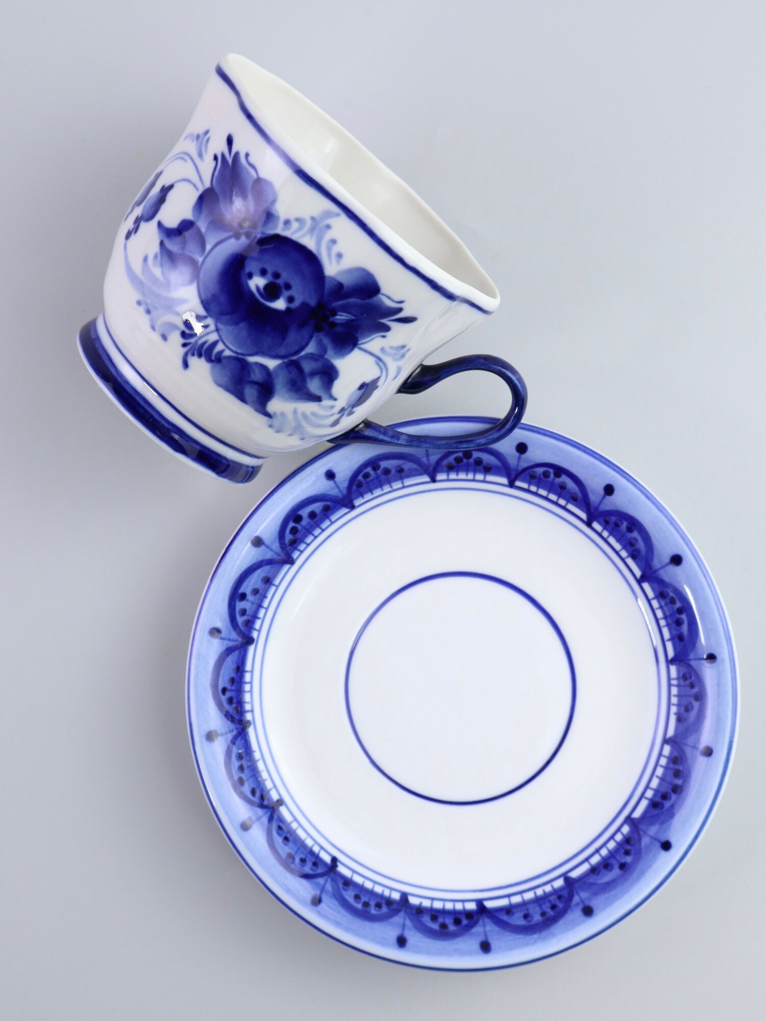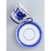 Купить Чайная пара «Воробышек» 250 мл. Объединение Гжель. Ручная роспись. Фарфор. с доставкой по всей России.