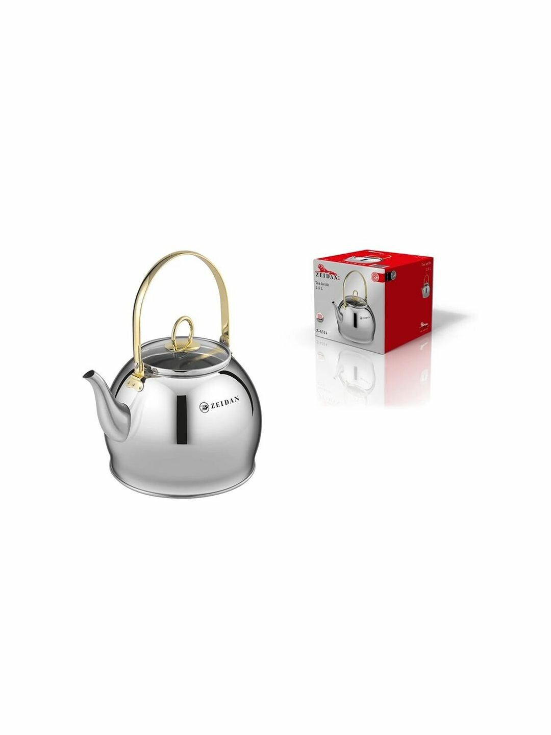 Купить Чайник 2, 5 л, стеклянная крышка, индукц. дно, подвижн. ручка под золото, (нержавейка) с доставкой по всей России.